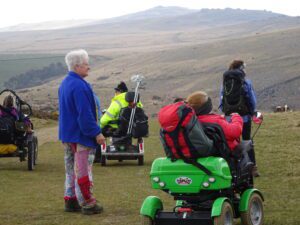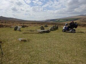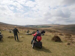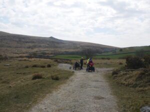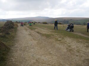 With the Dartmoor Walking Festival only a few months away, we met at Rowtor Car Park. There were six of us on buggies, accompanied by four walkers, two of them are Moorland Guides. We reconnoitred a route to Belstone via the Nine Maidens. This was the second WAGs reconnoitre, since the easing of the lockdown rules.