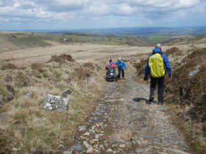 Today the WAG’s met at Belstone to try out a slightly different route, for this years Dartmoor Walking Festival. It was a small group today, only 4 of us on buggies with 3 walkers. We set off in sunshine, but with the wind chill making it feel cold for the buggy users. We had been warned, so we were well wrapped up.