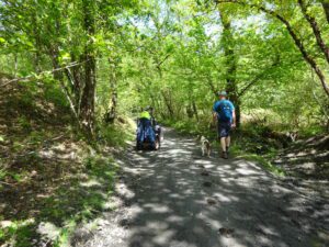 After lunch we made our way back to Pullabrook Woods, diverting off to look at a paddock alongside the River Bovey. We sat in the shade alongside the river, having a coffee and discussing the route. It is a resounding No, as even the first hill down into the Becka Valley is difficult in places. Gill and I can now resume our old habits, stopping at the Twisted Oak for a meal on the way home.