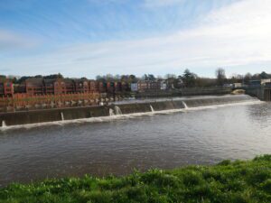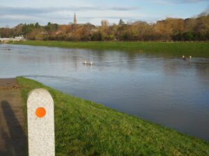 We did not take our cameras with us on Christmas Eve, so can not show the difference in the river levels. But the water levels in the Flood Relief Channel, had dropped over 2 feet, the flood channel is certainly doing its job. On Christmas Eve we could not see the 4 pillars in the photo below.