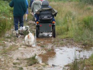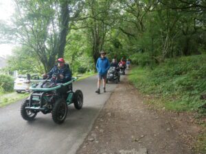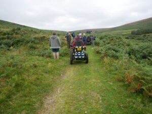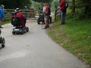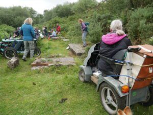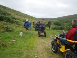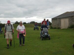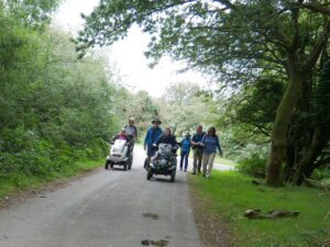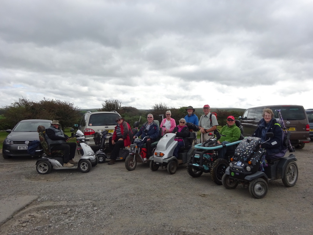 Today there were 7 mobility scooters and 10 walkers, for the route around Challacombe Farm and Soussons Woods.