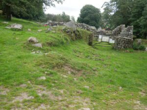 The structure above the path is part of a leat, to take water to one of the many mines in the area.