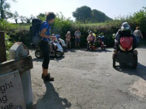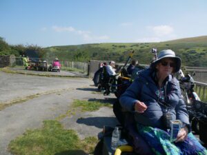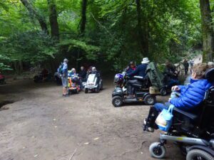 We went down a steep path off the Wray Trail, to sit by the river for our lunch. As it was so steep it is very easy for the scooters, to start sliding on the loose gravel surface. Everyone managed to get down and back up after lunch, without any mishaps, which is what we like to see.