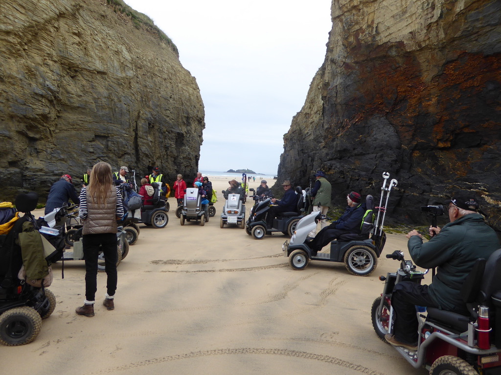 The Disabled Ramblers is a national organisation and can be contacted at www.disabledramblers.co.uk Rambles are organised by local groups and full details are on their website. The photo details are : Cornwall Rolling Ramblers and Disabled Ramblers stopped for a lunch break on Gwithian Beach in June 2019