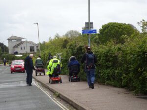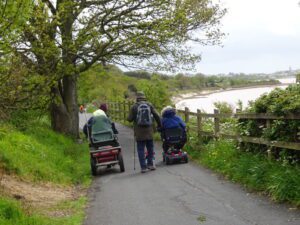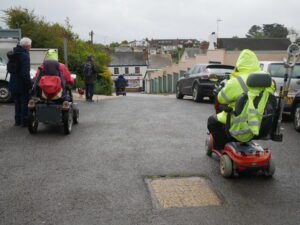 As this was a site assessment for Devon County Council, it went ahead despite the weather. Although we had the Gale force winds, the rain was not as bad as forecast. Due to the rain neither Gill or I took many photos on the day. There were 4 of us on buggies, accompanied by 2 walkers, one of the buggies was a small one designed for short trips. The detail that will be going onto the Devon County Council website, will be the easier level 1 routes to start with.