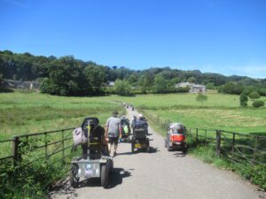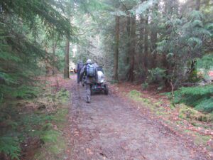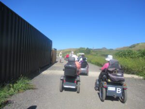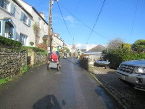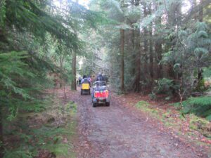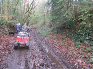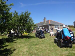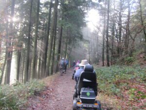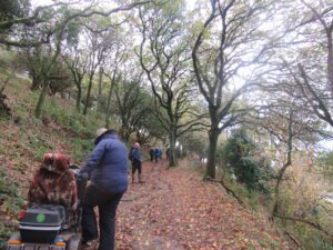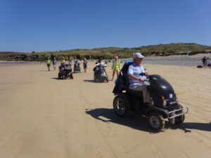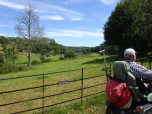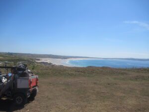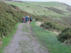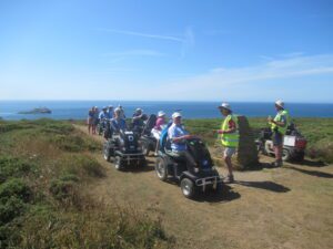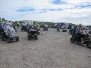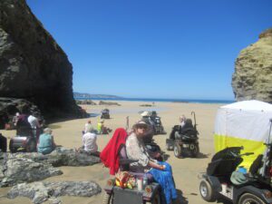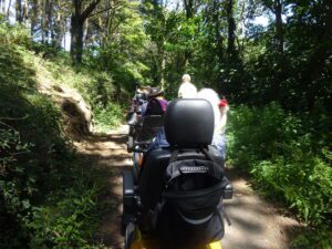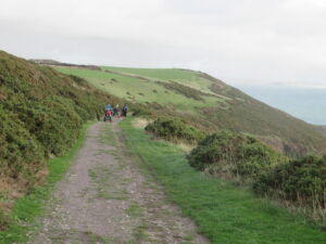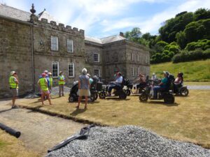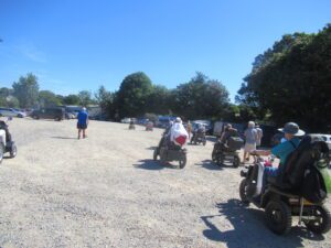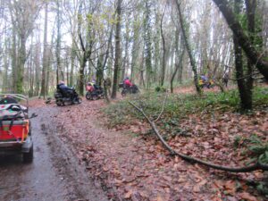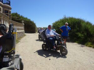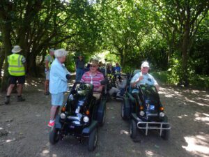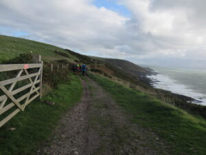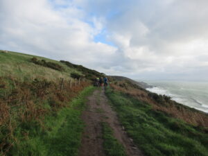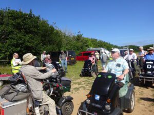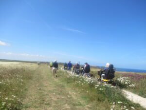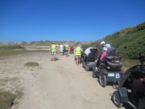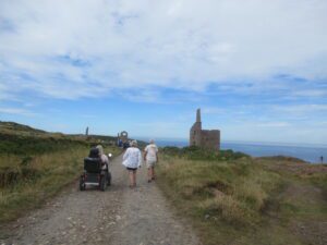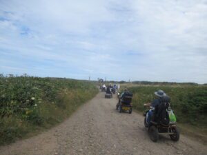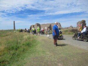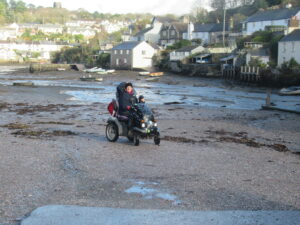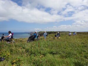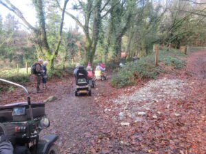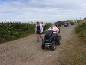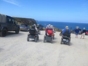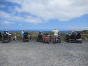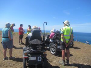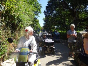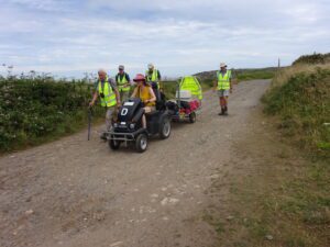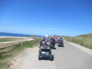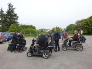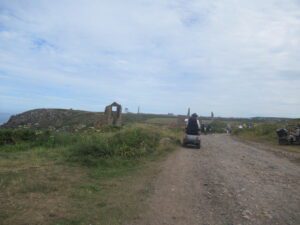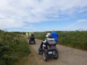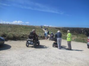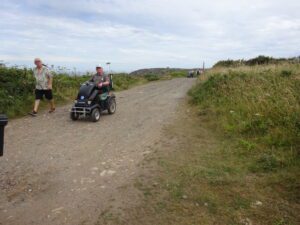 We had a problem with the gate at the Revelstoke car park, but were able to get the scooters through with difficulty. We had a lovely sunny day with a cold breeze, apart from the last 20 minutes with light rain. Due to the problem with the gate, I would advise you do the shorter route as listed on the Southwest Coast Path website.There is a link to the SWCPA website in my website’s information section.
