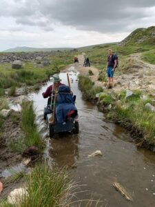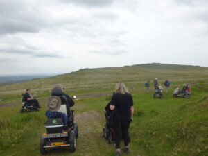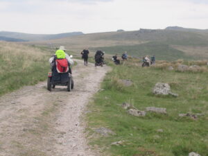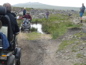 On Tuesday 23rd May we did a regular WAG’s reconnoitre, starting from Princetown to Foggintor and Sweltor Quarries. We were joined by a local company, who supply mobility equipment. They wanted to test 3 All Terrain Powerchairs, one failed within 0.5 miles, but the other 2 did very well. While we did not complete the whole route, we did manage to traverse a long flooded section of track near Foggintor Quarry. The water has been to deep for the mobility scooters in the past, but this time it was ok but had to be treated with care.