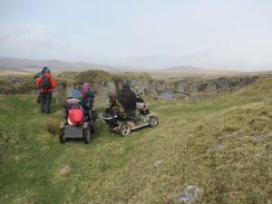 Today we had a small group, four on mobility scooters and two walkers. It was an overcast day with a strong cold wind, but it was dry.