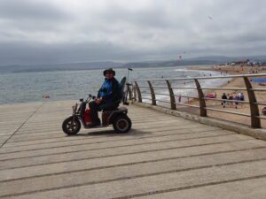 Today, we decided to go to Exmouth for Fish & Chips, doing the journey on the buggies. From home it is 11.5 miles to the Exeter Road chippie, which with a coffee stop on the way takes just under 3 hours. With a keen head wind the journey to Exmouth, was quite cool compared with earlier in the week.