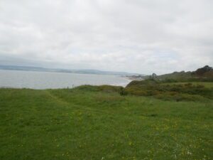 After lunch we made our way along the footpath behind the Pavilion and the Cricket Club. Then up Foxholes Hill, to join the Coast Path towards Sandy Bay. Once up on the cliffs we were exposed to the full force of the wind. As the track is a bit uneven with quite a gradient, we decided to turn around at the Geoneedle, to conserve battery for the return journey.