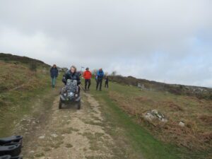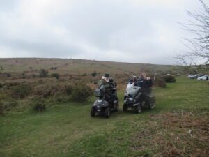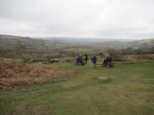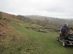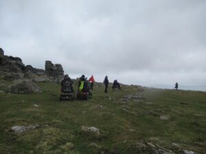 Today we met at Haytor for a photo shoot, to promote the fact that the DNPA won an award for their work on access for all. This is all part of promoting the Miles without Styles routes, the National Park are listing on their website. After The photo shoot moved to Hound Tor, to reconnoitre a possible route up to the Tor, then on to the Medieval Settlement.