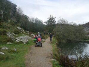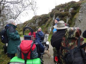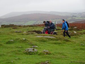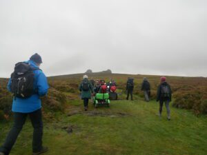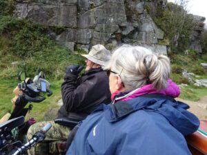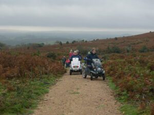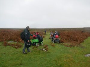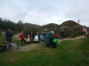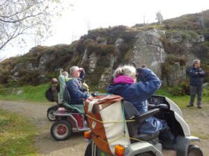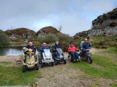 Today 5 WAGs group members on mobility scooters, accompanied by 3 walkers. Also 3 members of staff from Dartmoor National Park Authority (DNPA), joined us for a photoshoot at Haytor Quarry and Smallacombe Rocks.