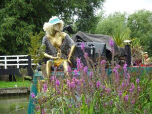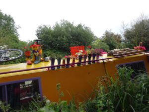 This is two photos of the same boat, so the owner has a good sense of humour. At one point there were a few boats moored on the opposite side of the canal from the towpath. The owners had their little garden, including garden sheds.