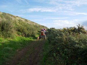 This section was more demanding on a couple of points, the pedestrian gates were not buggy friendly. But we were able to use the farm gates. While the track generally followed the contours of the land, it was a lot wetter and muddier.