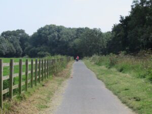 This route follows the Heritage Trail and Templer Way at various points. The Sawdust Fusiliers Memorial is signposted from the lake circular walk, taking you out of the Country Park towards Stover School. Once in Teigngrace I headed towards A38 to find access to the cycle path. As this avoids the two Five Bar Farm Gates, either side of the railway line on the path in the village.