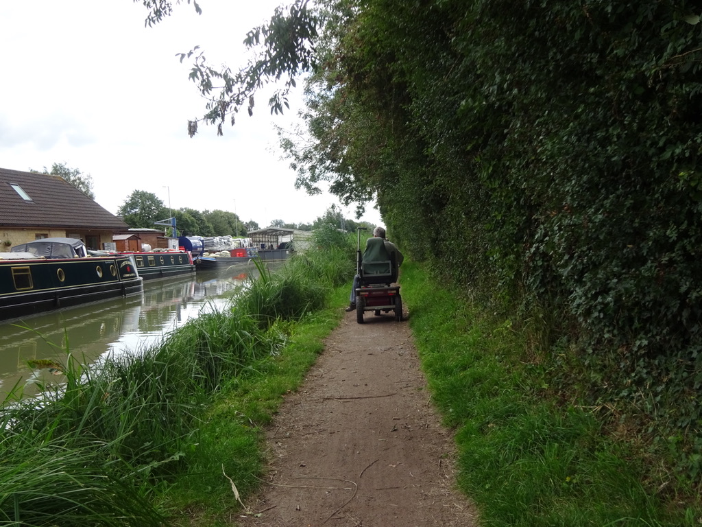 On paper this looks like a nice easy route, on a towpath that is also a national cycle route. The towpath is very narrow in places, making it difficult to pass other users. The grass between the gravel and the hedge, is at such a slope it is difficult to pass cyclists with our Trampers.
