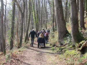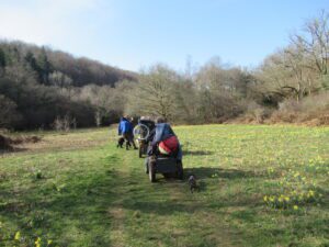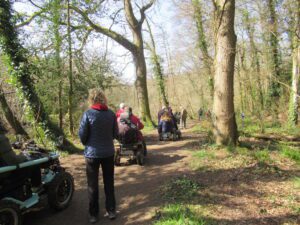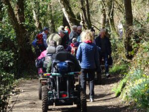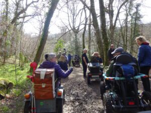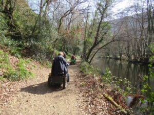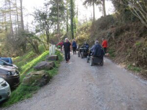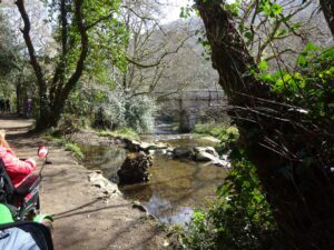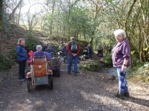 On Tuesday we organised a WAGs public walk, meeting at Clifford Bridge in the Teign Valley. We had 10 people on mobility scooters, accompanied by 10 walkers. We headed down river to Steps Bridge, with a climb up out of the valley to a view point on the way back.