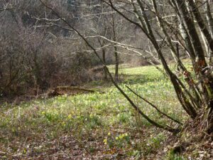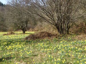 The grassy areas are covered in yellow, with the Daffodils. Which will be replaced with the blue of the bluebells, and the white of the wild Garlic. After the Bluebells the Bracken takes over, which is nowhere near as attractive.